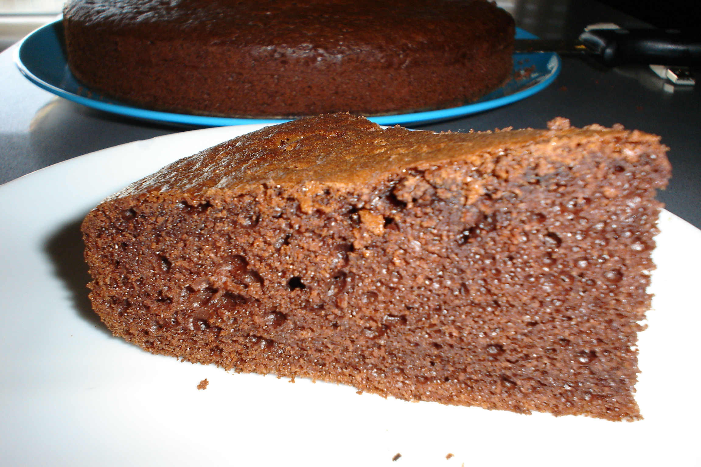 En este caso lo he hecho de chocolate (no concibo ningún bizcocho definitivo que no sea de choco :P) pero sustituyendo el chocolate por harina (en este caso sería menos de un vaso, posiblemente la mitad) y añadiendo un poco de rayadura de limón podríamos hacer un bizcocho blanco bastante bueno. Ya os contaré si pruebo alguna vez.