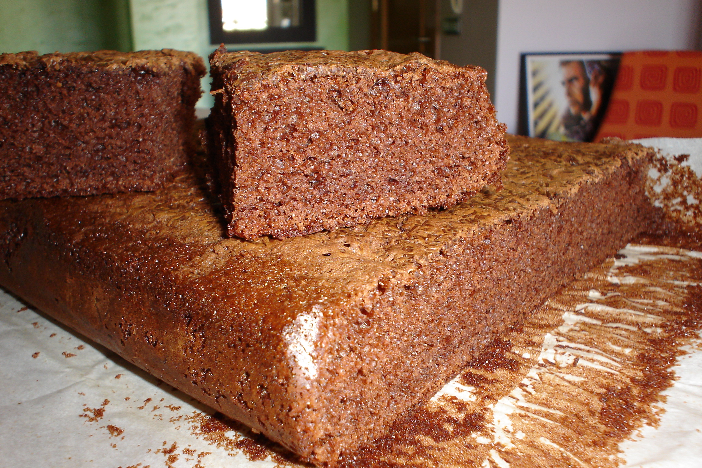 He aquí otra variante de mi bizcocho de chocolate definitivo, sólo que esta vez lleva harina integral, y como no me quedaba un vaso completo de aceite de girasol, he compensado con medio vaso de margarina derretida. Además, y como soy amante de las costras en panes y bizcochos, he recubierto la parte de arriba con virutas de chocolate, que después de enfriarse, se endurecen formando una cobertura crujiente en en bizcocho. ¡Espectacular!