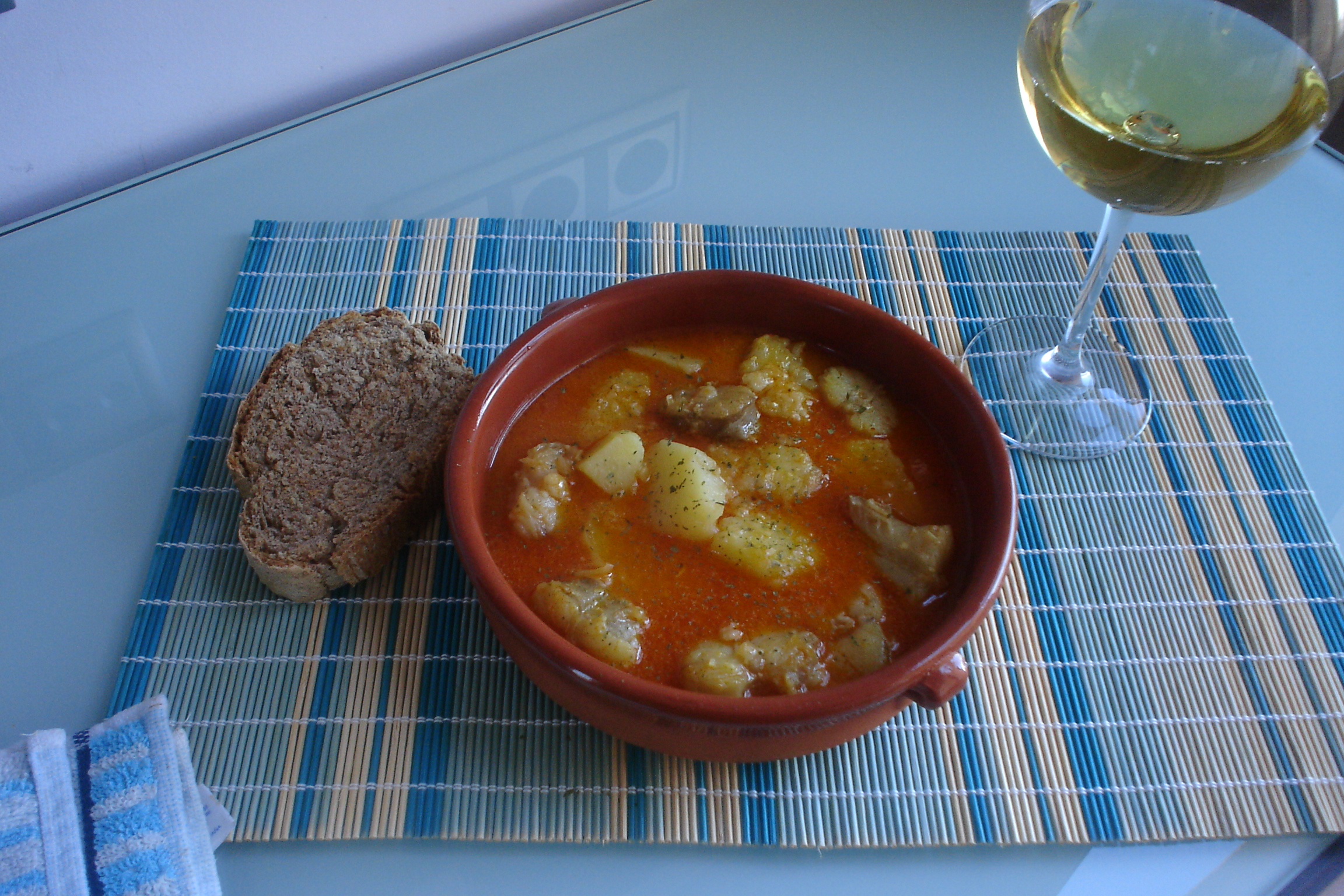 Este fin de semana no he ido ni a comprar. Así que he descongelado unas colas de rape que reservaba para una ocasión así y me he dispuesto a guisar un plato de pescado muy marinero riquísimo. A ver que os parece.